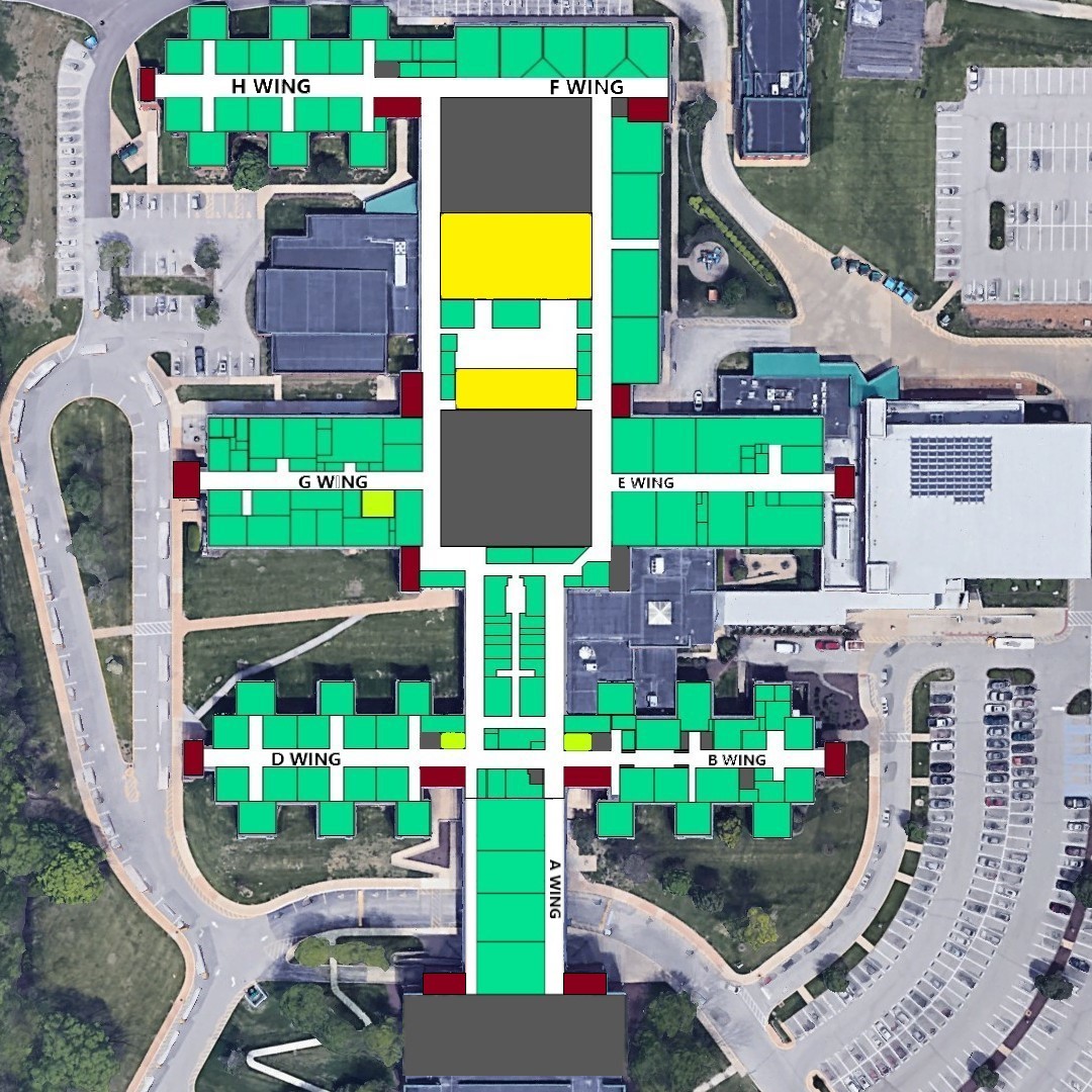 - Use the Level 0, Level 1, and Level 2 buttons below the map to view different floors.